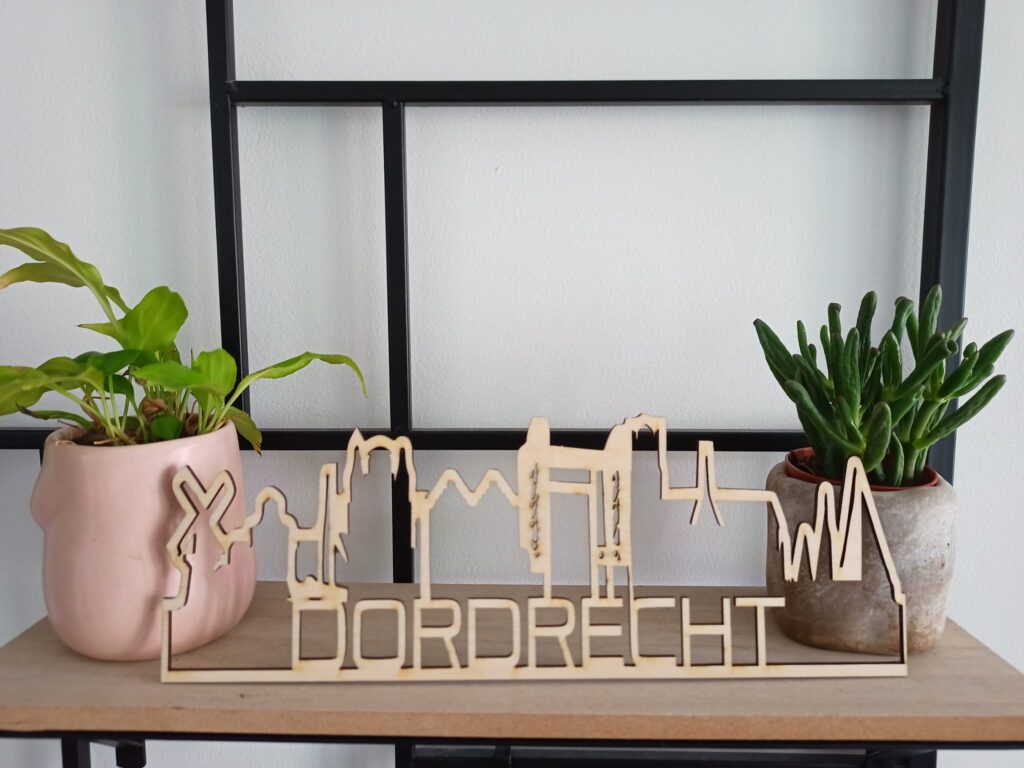 Het liefst ga ik aan de slag met de houtlasersnijder. Met deze machine kan er gegraveerd en gesneden worden. Medaillelijsten, skylines en bouwpakketten zijn met een zeer strakke precisie van minder dan 0,1 mm te bestellen.